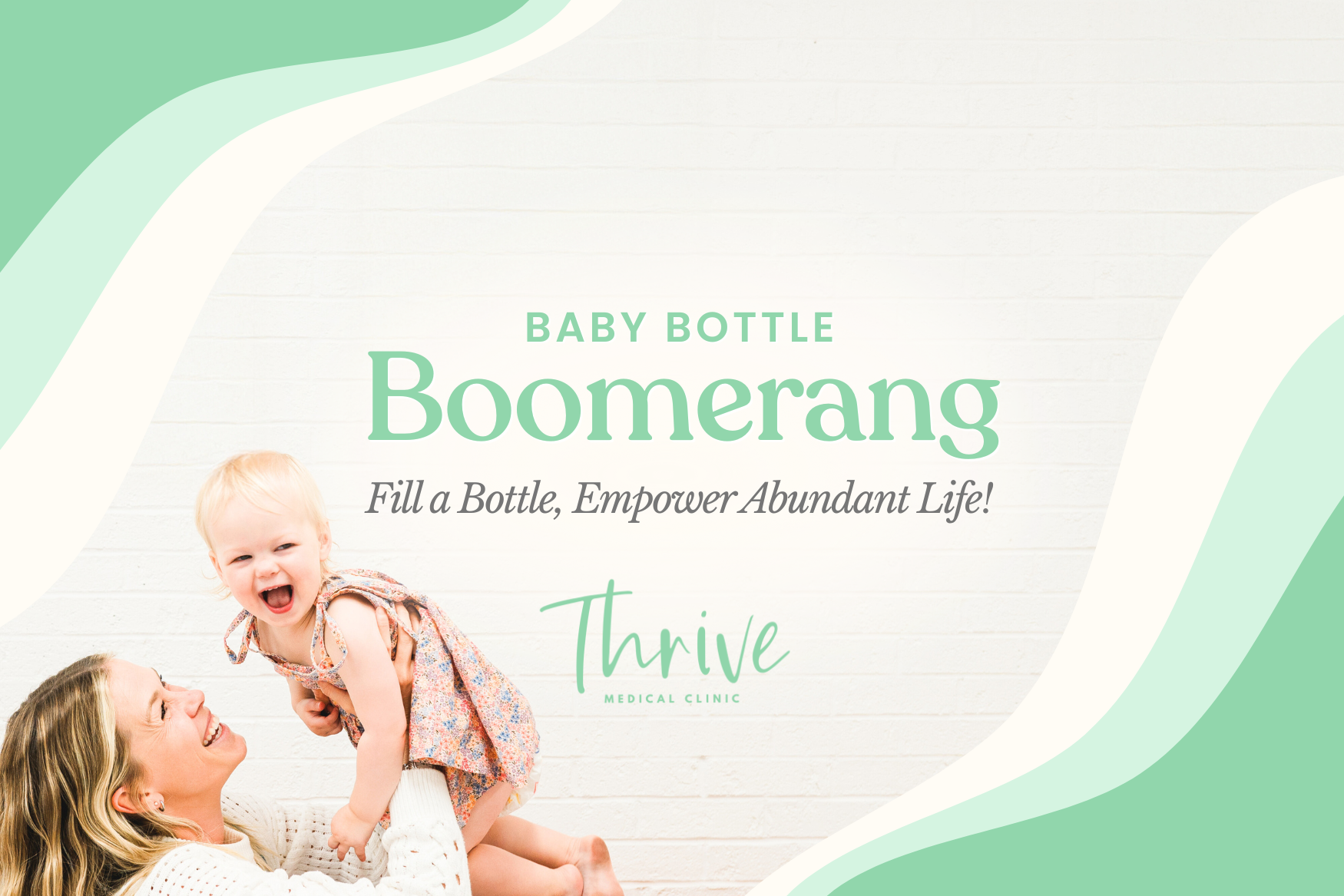 Baby Bottle Boomerang (BBB) is a community-wide fundraiser that helps Thrive Medical Clinic equip women and men who feel like abortion is their only option, with the solutions, resources and support they need to be able to choose life for their unborn baby and thrive as parents. Your gifts empower abundant life for families in unplanned pregnancies, right here in our community!