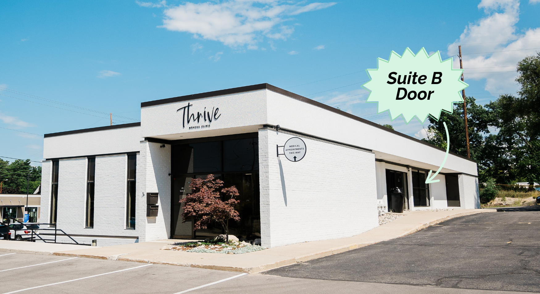 Drive up to our Suite B side door between 8:30 AM - 4:00 PM.