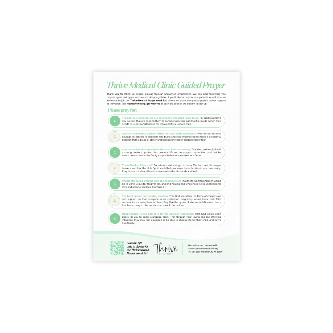 Sign up to receive anonymous prayer requests, so you can pray for our patients in real time. As part of our Thrive community, we'll also keep you up to date on what's happening at Thrive Medical Clinic.